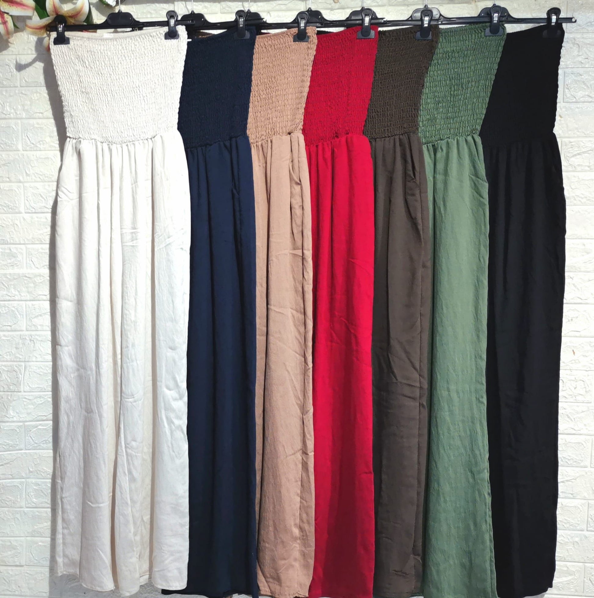 Scopri la perfetta sintesi di libertà e stile con Sogno Palazzo, la tuta intera che unisce un bustino elasticizzato a un ampio pantalone palazzo, per un look sofisticato e un comfort senza paragoni.