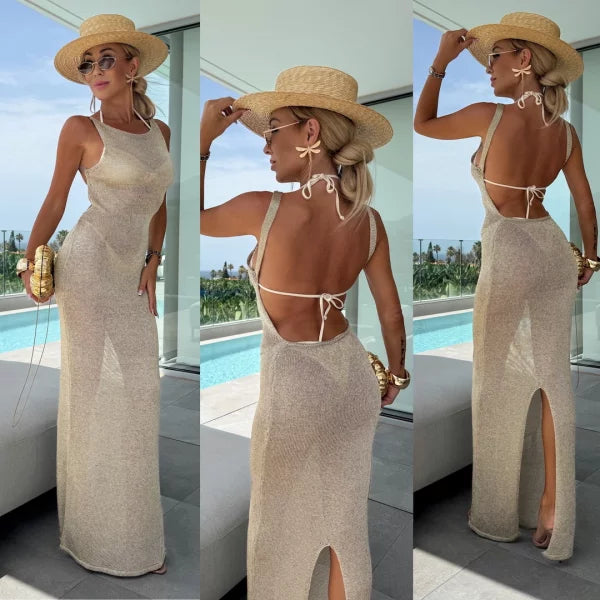 A phenomenal dress with the addition of metallic fiber, which catches the eye with its shine and lightness. It shines beautifully in the sun and light, creating a striking style for summer evenings or walks on the beach.